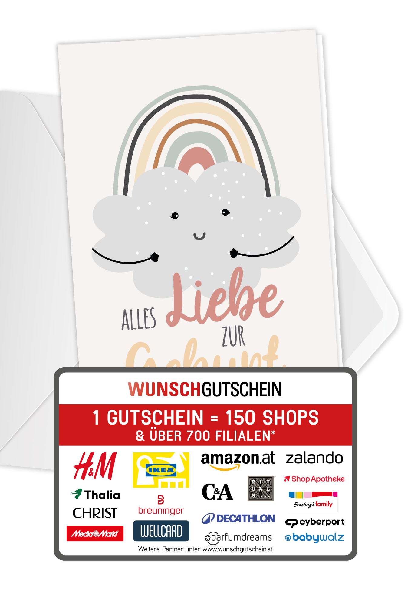 WUNSCHGUTSCHEIN ist das perfekte Geschenk: Verschenke den Gutschein, der bei über 100 Online-Shops einlösbar ist – Von A wie Amazon bis Z wie Zalando. Du liegst mit deinem Geschenk also immer richtig! WUNSCHGUTSCHEIN ist in den Wertstufen 15, 25, 50, 100 und 150 Euro erhältlich.