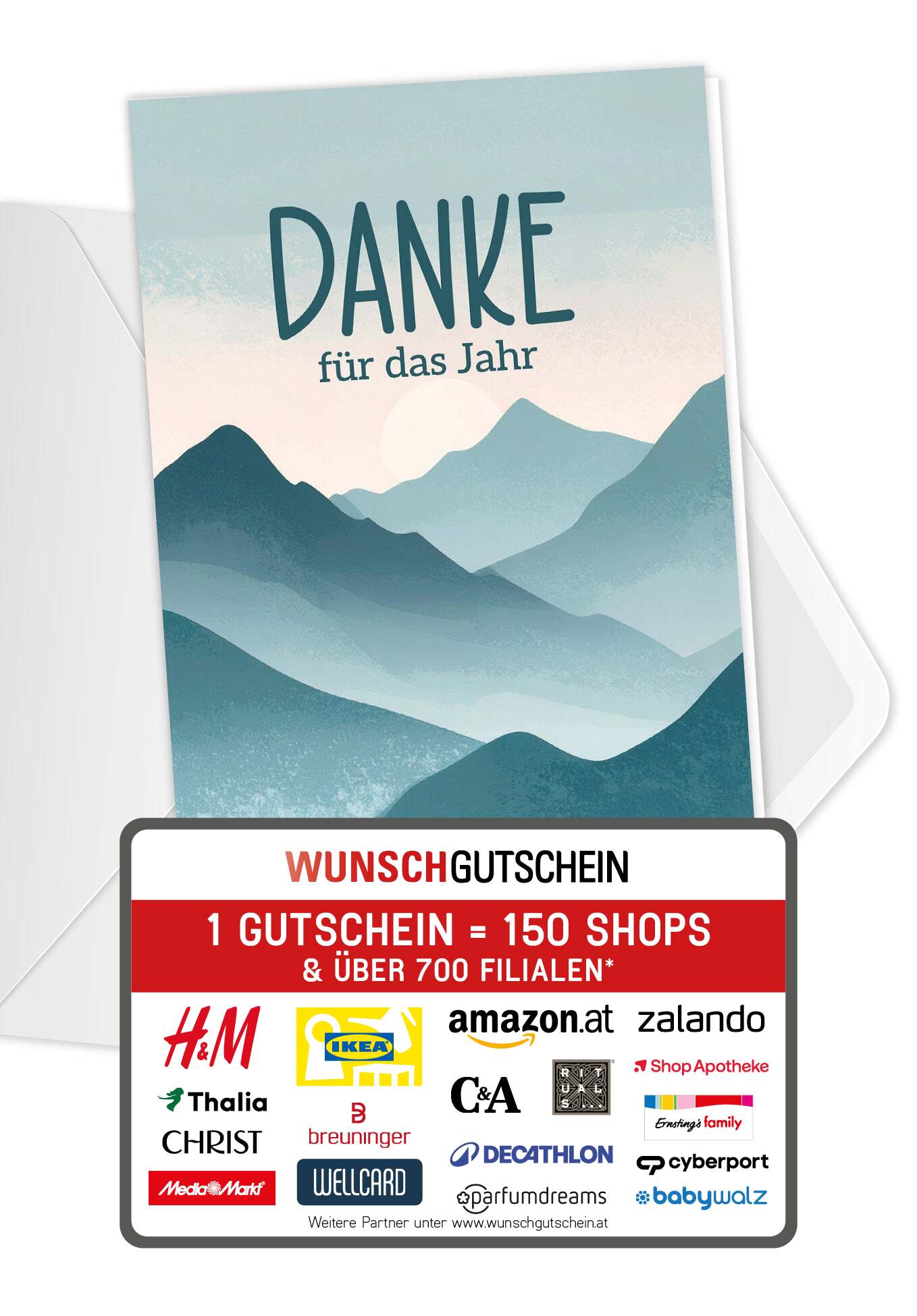 WUNSCHGUTSCHEIN ist das perfekte Geschenk: Verschenke den Gutschein, der bei über 100 Online-Shops einlösbar ist – Von A wie Amazon bis Z wie Zalando. Du liegst mit deinem Geschenk also immer richtig! WUNSCHGUTSCHEIN ist in den Wertstufen 15, 25, 50, 100 und 150 Euro erhältlich.
