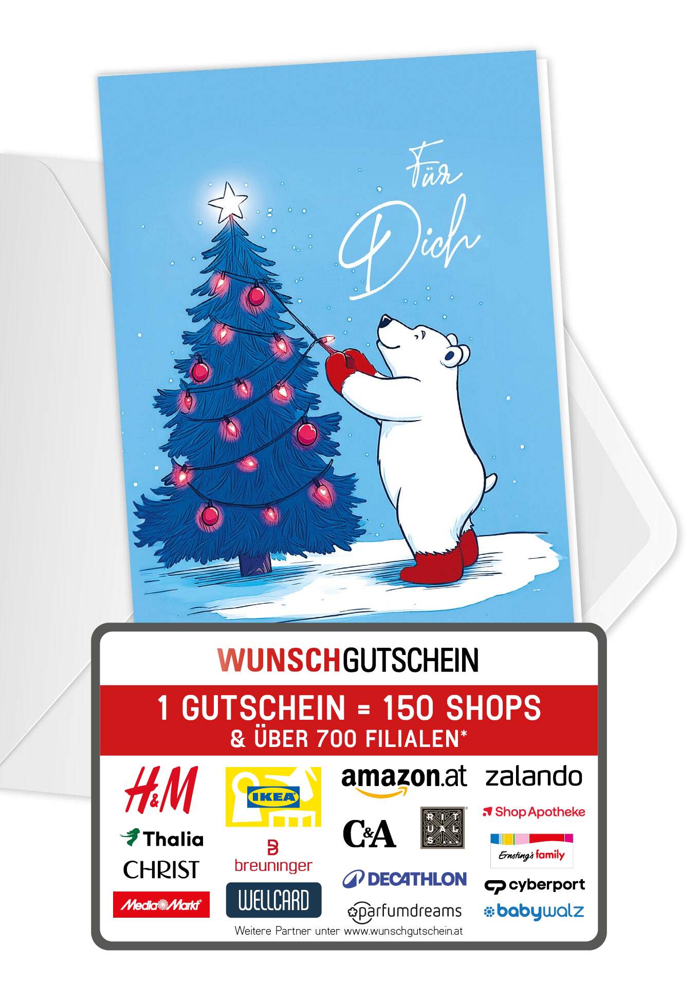 WUNSCHGUTSCHEIN ist das perfekte Geschenk: Verschenke den Gutschein, der bei über 100 Online-Shops einlösbar ist – Von A wie Amazon bis Z wie Zalando. Du liegst mit deinem Geschenk also immer richtig! WUNSCHGUTSCHEIN ist in den Wertstufen 15, 25, 50, 100 und 150 Euro erhältlich.