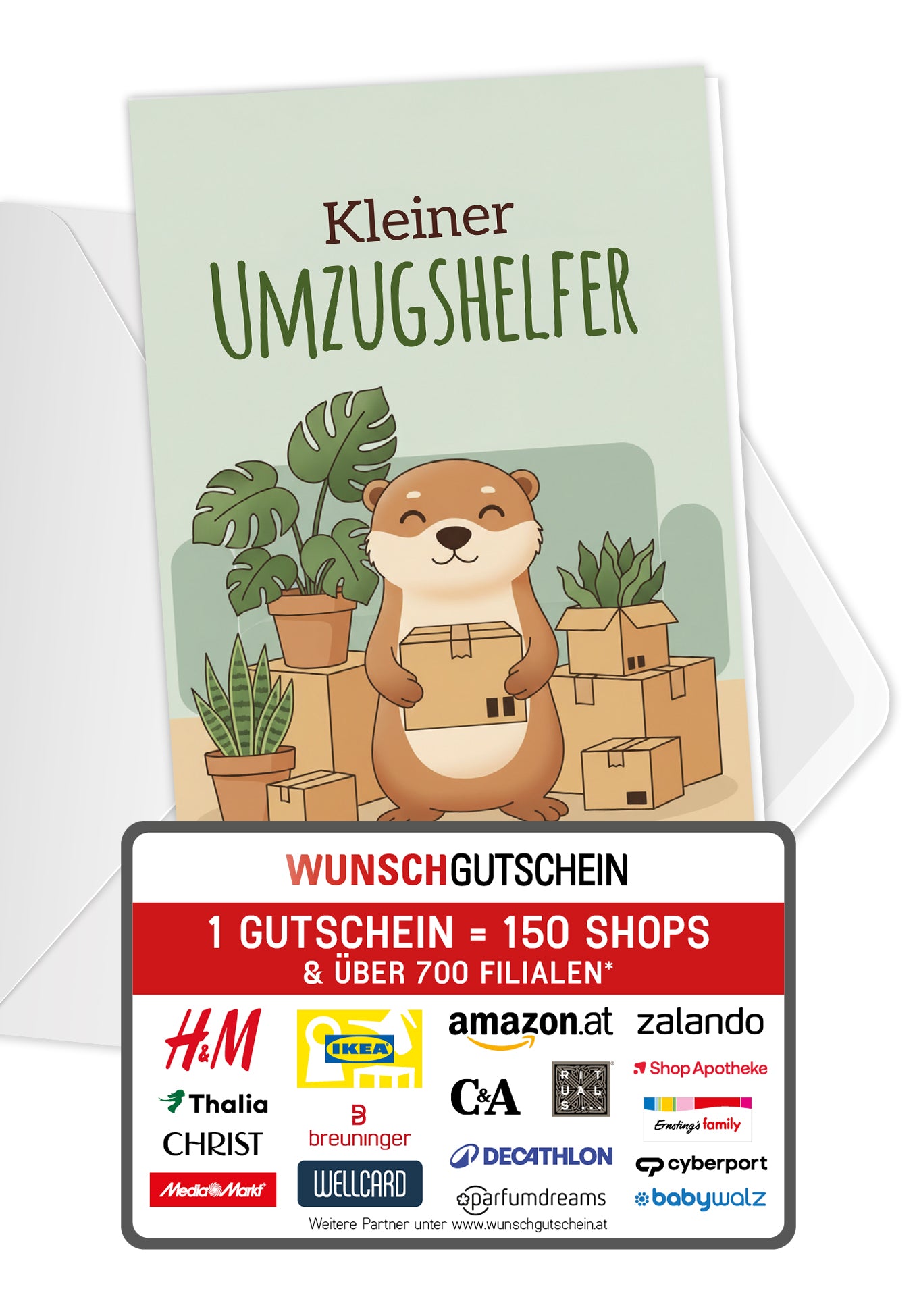 WUNSCHGUTSCHEIN ist das perfekte Geschenk: Verschenke den Gutschein, der bei über 100 Online-Shops einlösbar ist – Von A wie Amazon bis Z wie Zalando. Du liegst mit deinem Geschenk also immer richtig! WUNSCHGUTSCHEIN ist in den Wertstufen 15, 25, 50, 100 und 150 Euro erhältlich.