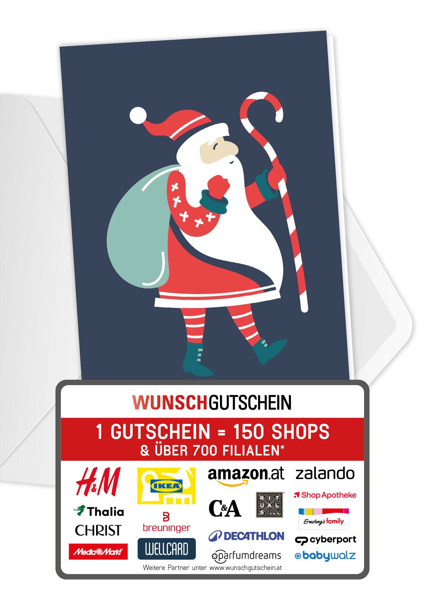 WUNSCHGUTSCHEIN ist das perfekte Geschenk: Verschenke den Gutschein, der bei über 100 Online-Shops einlösbar ist – Von A wie Amazon bis Z wie Zalando. Du liegst mit deinem Geschenk also immer richtig! WUNSCHGUTSCHEIN ist in den Wertstufen 15, 25, 50, 100 und 150 Euro erhältlich.
