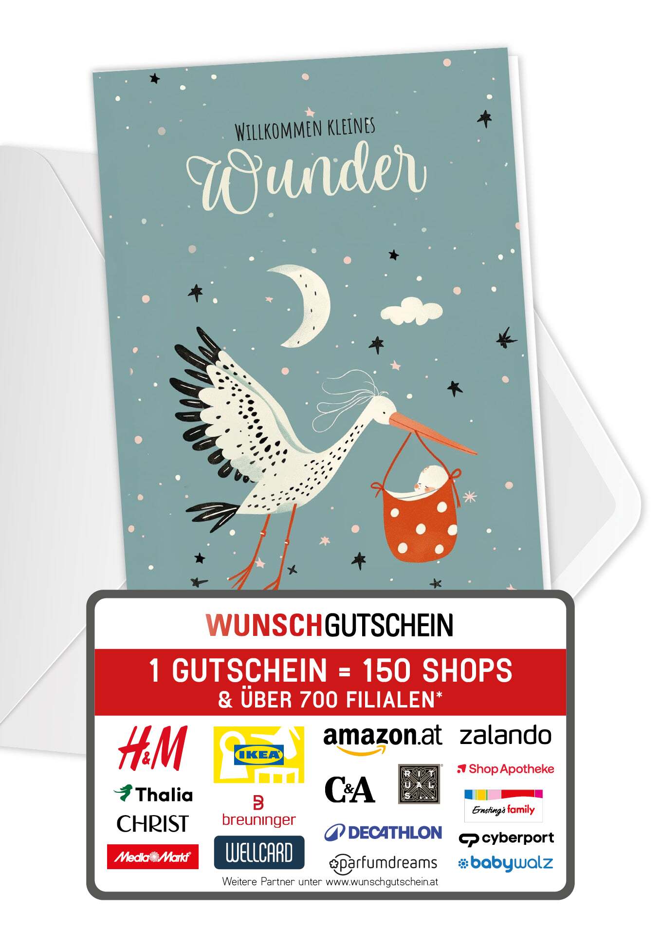 WUNSCHGUTSCHEIN ist das perfekte Geschenk: Verschenke den Gutschein, der bei über 100 Online-Shops einlösbar ist – Von A wie Amazon bis Z wie Zalando. Du liegst mit deinem Geschenk also immer richtig! WUNSCHGUTSCHEIN ist in den Wertstufen 15, 25, 50, 100 und 150 Euro erhältlich.